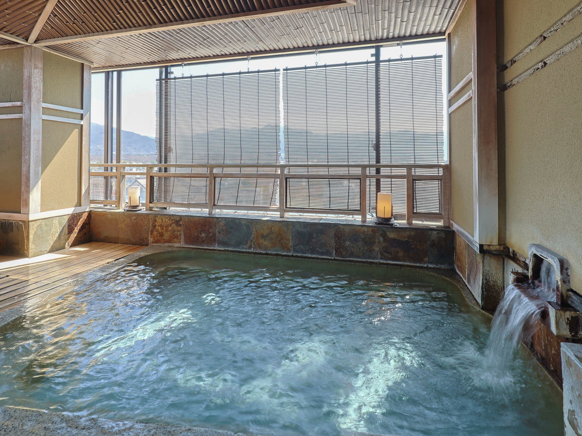 貸切展望風呂 ゆるり木の温もりに包まれた癒しの空間で心ゆくまでお寛ぎいただけます。